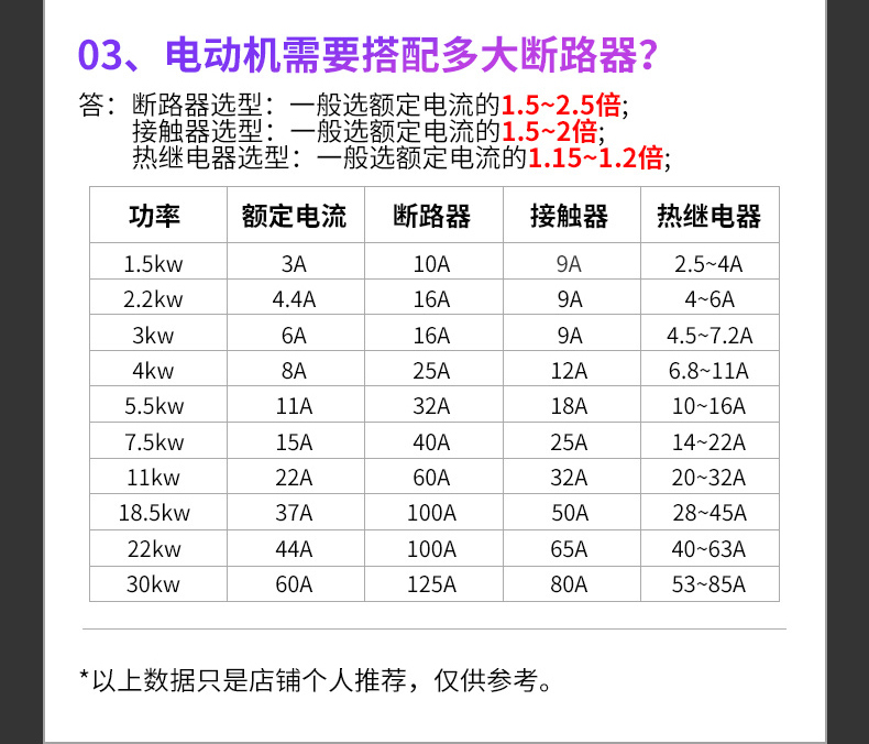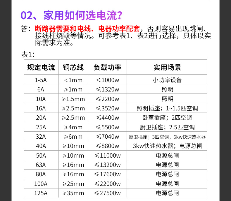 額定電流 1A 2A 3A 6A 10A 16A 20A