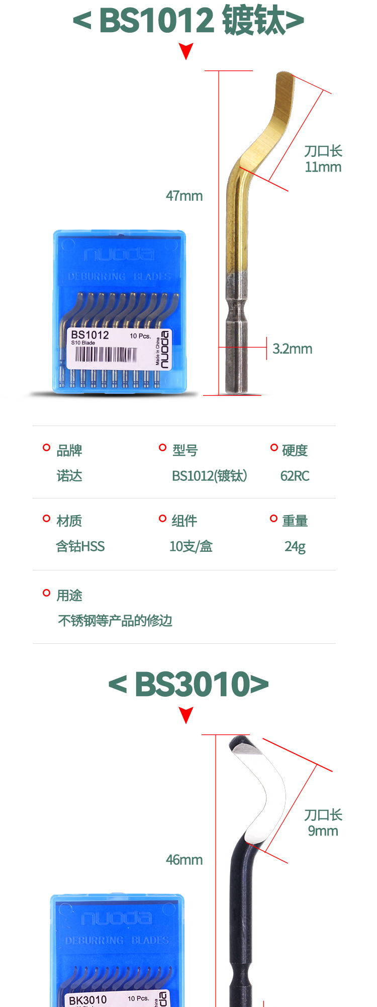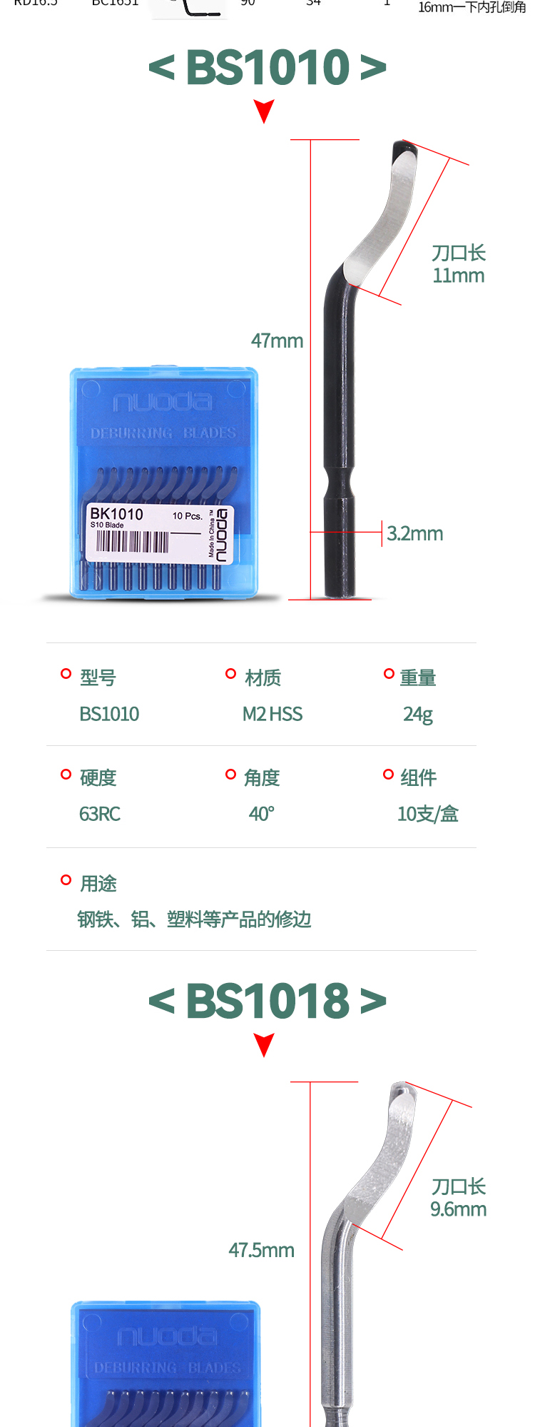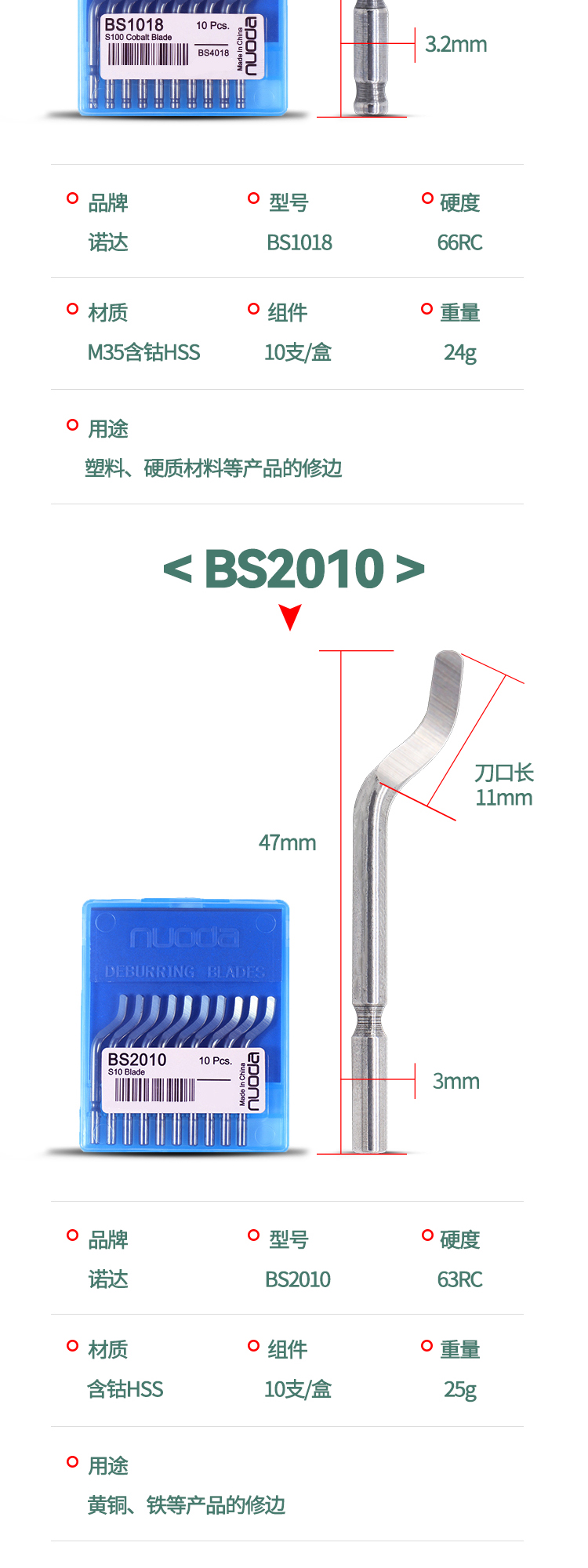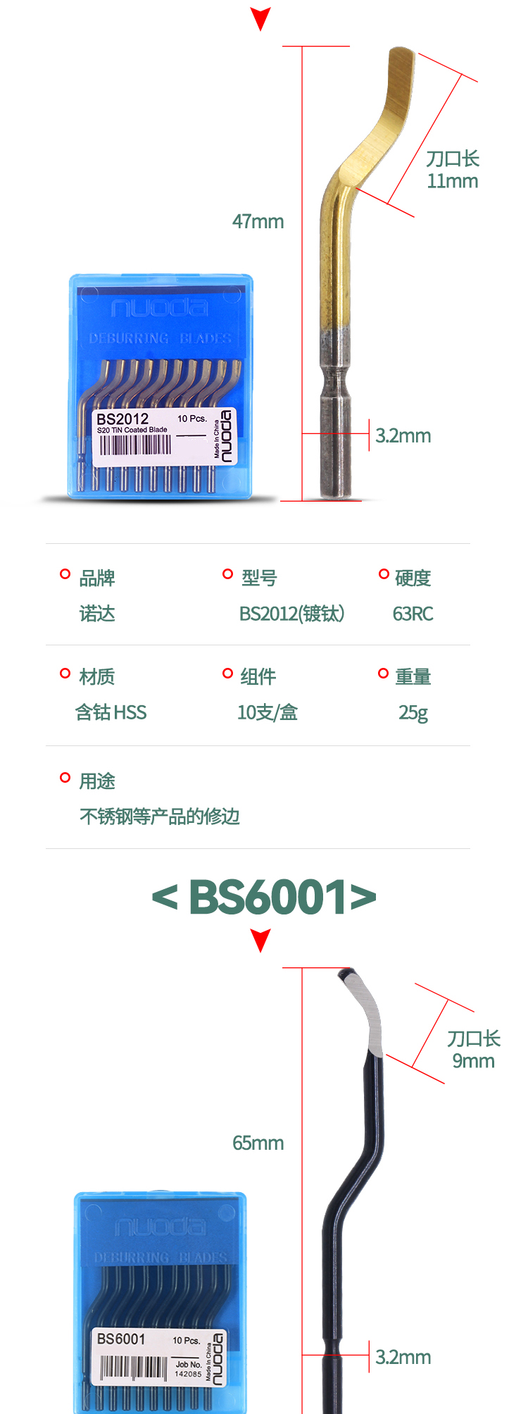 NUODA去毛刺刮刀修邊刀進口諾達刮刀片器內孔倒角刀不銹鋼BS1018BS1010