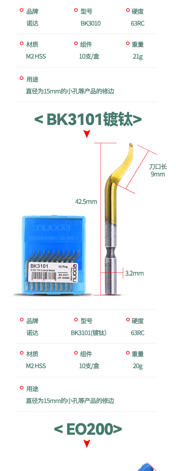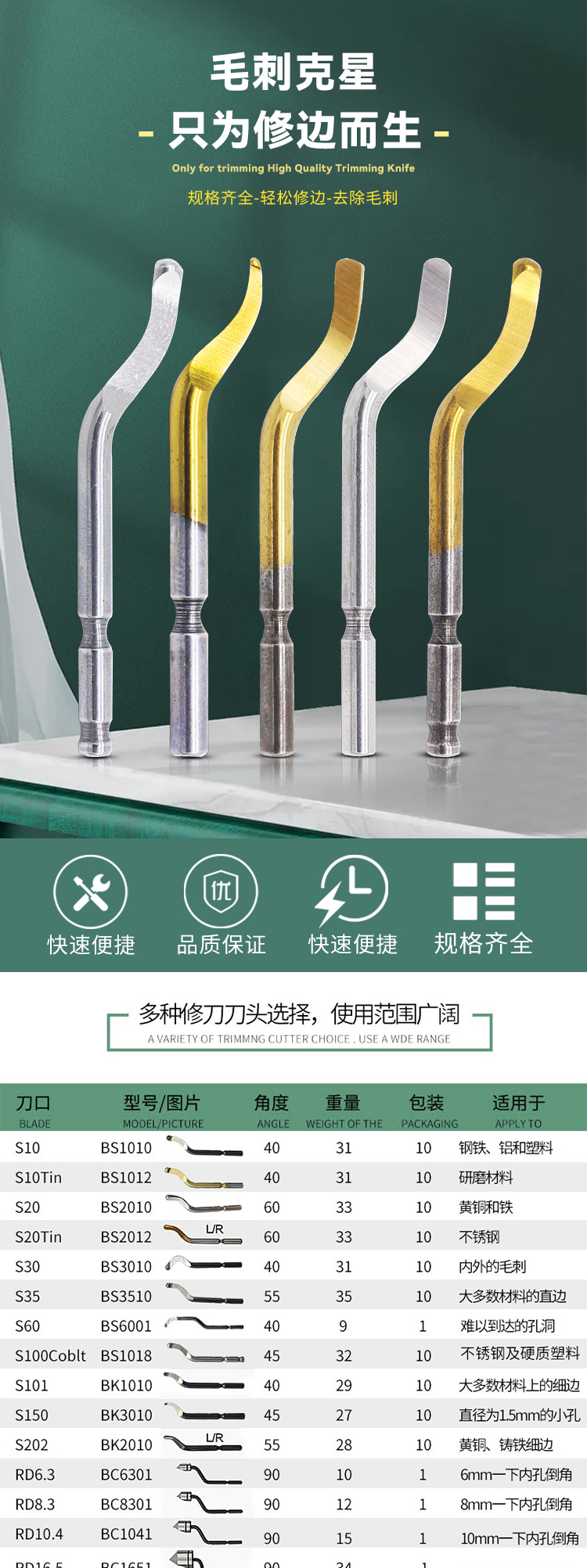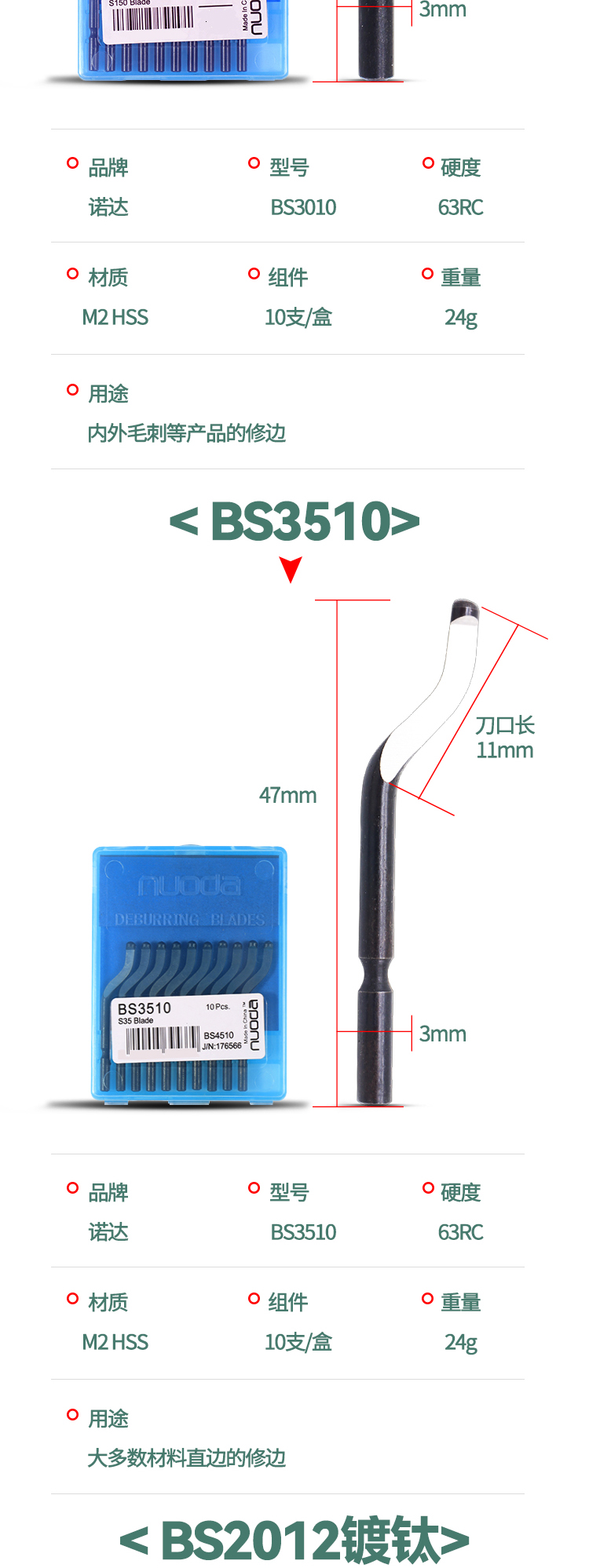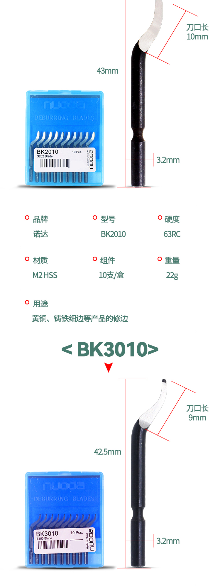 NUODA去毛刺刮刀修邊刀進口諾達刮刀片器內孔倒角刀不銹鋼BS1018BS1010